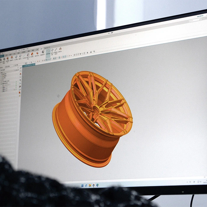 Seleção de padrão de raios (raios em Y/multiraios/côncavo profundo) com renderização 3D fornecida. Várias opções de acabamento, incluindo corte de diamante, acabamento cromado, polido ou escovado.